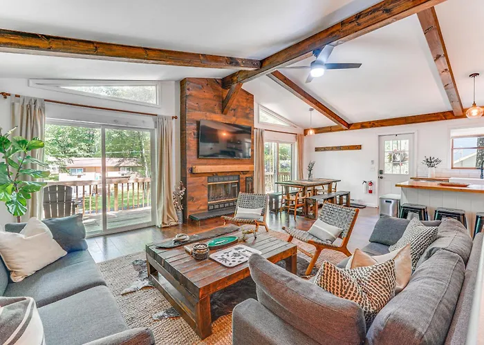 Situated approximately a 10-minute ride from Mount Pocono United Methodist Church, the 2-bedroom Private Hot Tub Tree-Lined Poconos Home! Pocono Summit entices guests with a Jacuzzi, ensuring a more relaxing stay.